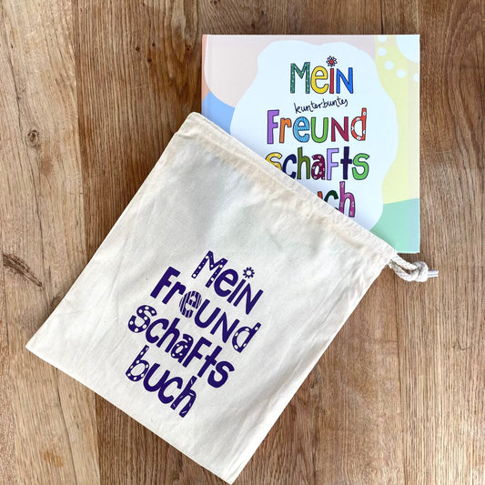 Geschenkset: Freundschaftsbuch Kunterbunt & Tasche personalisiert